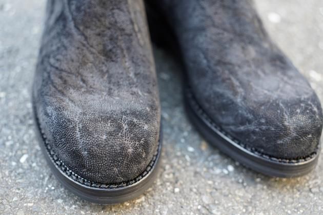 象革は柔軟性が高くキズや雨にも非常に強く最強のマテリアル。雨の日も全く気にすることなくご愛用頂ける革靴がこの靴です。最高の耐久性をもった象革をアッパーに採用し、履き馴染みの素晴らしハンドソーンウエルテッド製法で仕上げた一足。アウトソールはビブラム仕様にすることで、本当に晴雨天候気にせず履ける最強の一足が完成しました。